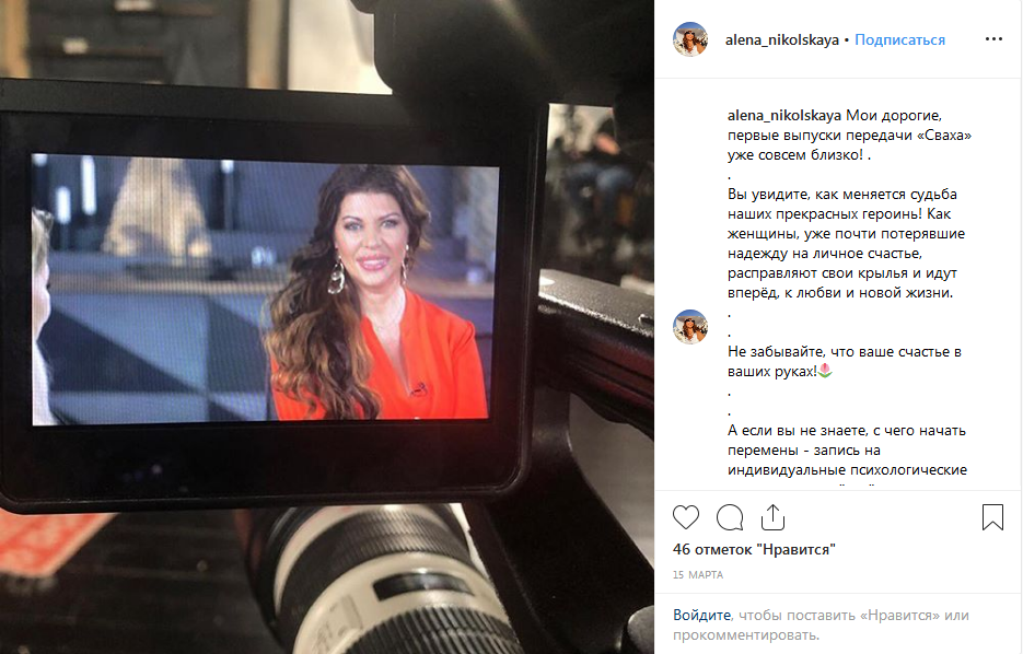 Также, получив солидный комплект знаний, Алена Никольская начала проводить разного рода психологические тренинги. На них можно было встретить как солидных бизнесменов и предпринимателей, так и обычных людей. В приоритете у Алены всегда были женщины. Она помогала в построении успешной карьеры и налаживании личной жизни.