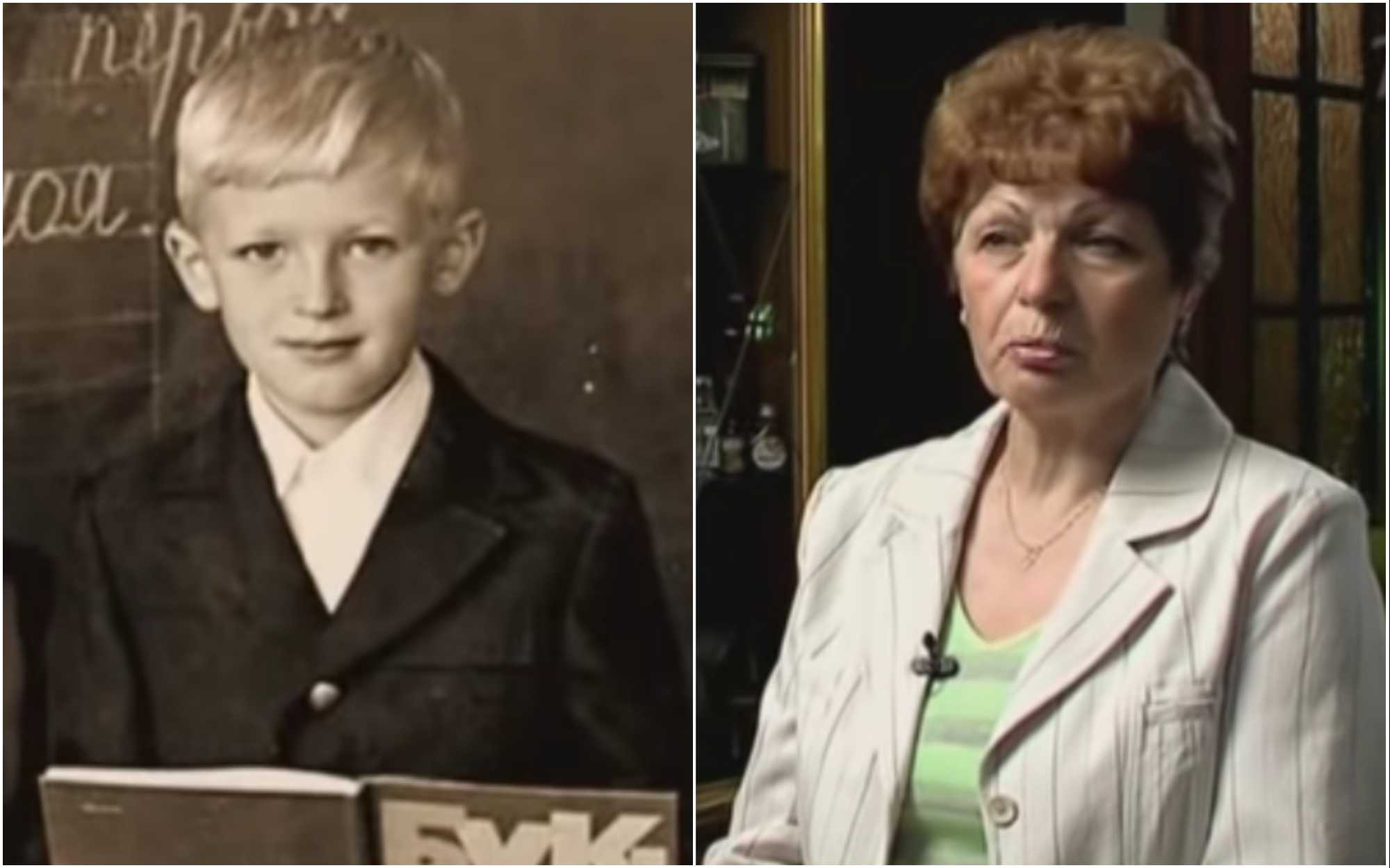 Игорь Красавин в школе / его мать в телепередаче, посвященной сыну
