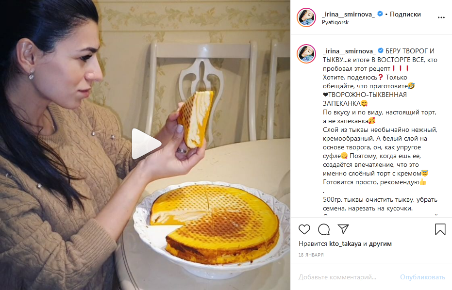 Именно в то трудное время Ирина придумала создать свой кулинарный блог. Интерес к кулинарии у нее начался еще в детские годы, когда она смотрела, как её мама колдовала на кухне. Будучи замужней женщиной, она много времени проводила за плитой, но ее это не обременяло. Вскоре Владимир уже не хотел есть одно и то же блюдо два дня подряд и просил любимую приготовить что-то новое. Сидя в декрете, Смирнова хотела общение и быть кому-то полезной, вот тогда то она и решилась стать food-блогером в соцсети Instagram.