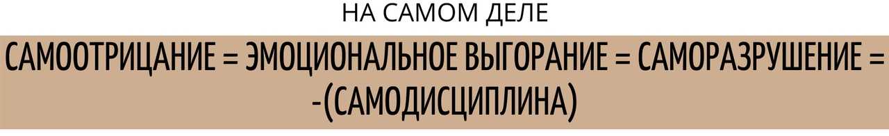 Как только вы разберетесь с основными причинами вашего стыда и недовольства собой и организуете свою жизнь так, чтобы за хорошее поведение вы получали больший эмоциональный результат, чем за нежелательное — то в итоге это и станет самодисциплиной без вложения каких-либо усилий (воли, стыда, ненависти к себе).