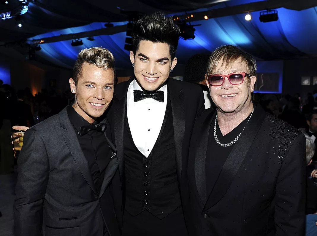 Адам Ламберт, Саули Коскинен, Элтон Джон на 20-й ежегодной церемонии вручения премии «Оскар» в Беверли-Хиллз, 26 февраля 2012 г.