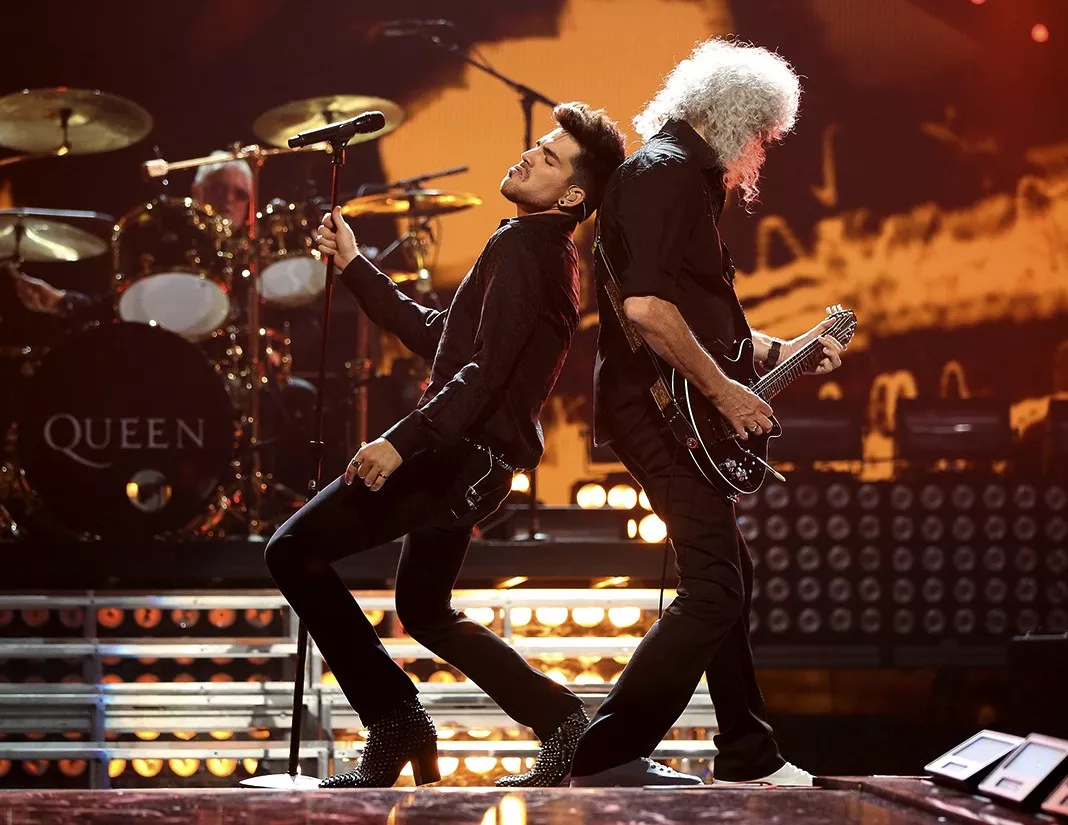 Адам Ламберт с Queen на сцене во время музыкального фестиваля iHeartRadio в Лас-Вегасе, 20 сентября 2013 г.