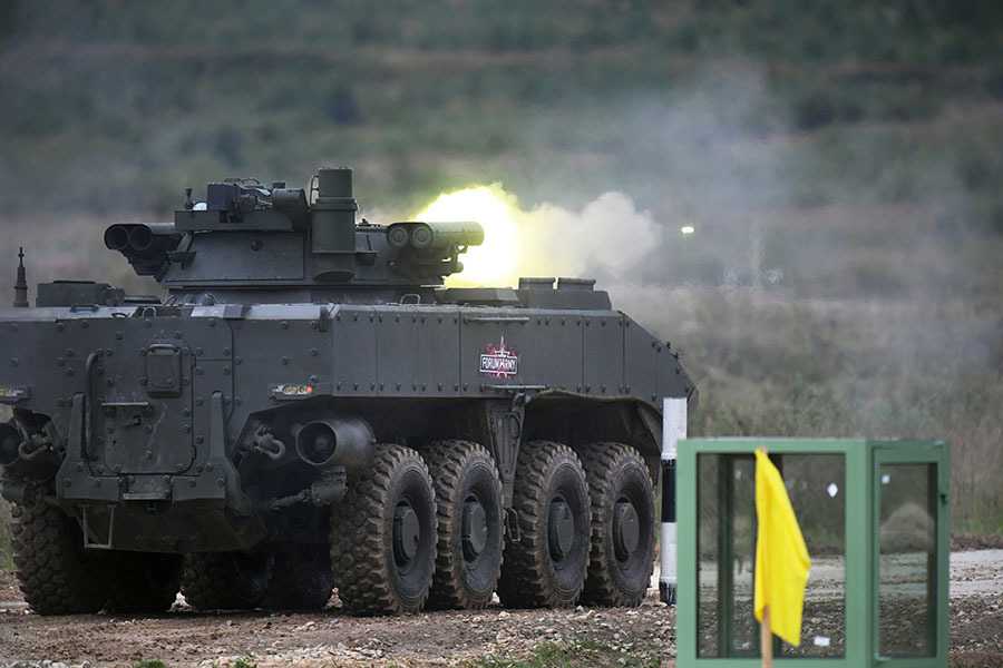 - Боевая машина пехоты БМП К-17 «Бумеранг» во время динамического показа вооружений, военной и специальной техники мотострелковых войск в рамках Международного военно-технического форума (МВТФ) «Армия-2020» в сухопутном кластере на полигоне «Алабино» в Московской области