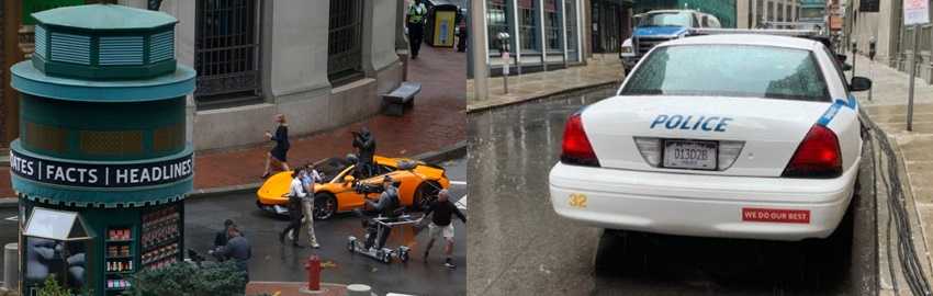 Сцену ограбления банка снимали в Бостоне на Килби-стрит. В киоске новостей, размещенном для фильма на Тропе Свободы (Фридом Трейл), была напечатана газета с поддельным заголовком «94-летняя женщина грабит банк для своего любовника» и журнал с обложкой «Любимые способы быть ограбленными». Витрины были перепроектированы так, чтобы они напоминали стриптиз-клубы, ювелирные магазины и точки продажи поддельных удостоверений. А на бампере полицейской машины, припаркованной на Уотер-стрит, красовалась наклейка с надписью «Мы делаем все возможное».