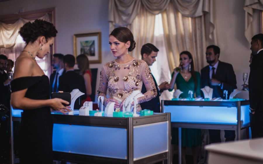 4. Режиссер Екатерина Двигубская призналась, что сценарий предполагал создание небытового мира поселка. Главным оттенком проекта постановщик выбрала изумрудный, под цвет сокровищ княжны Тумановой. Эта тональность повторяется в природе, одежде, украшениях и в интерьере, созданном для героев.