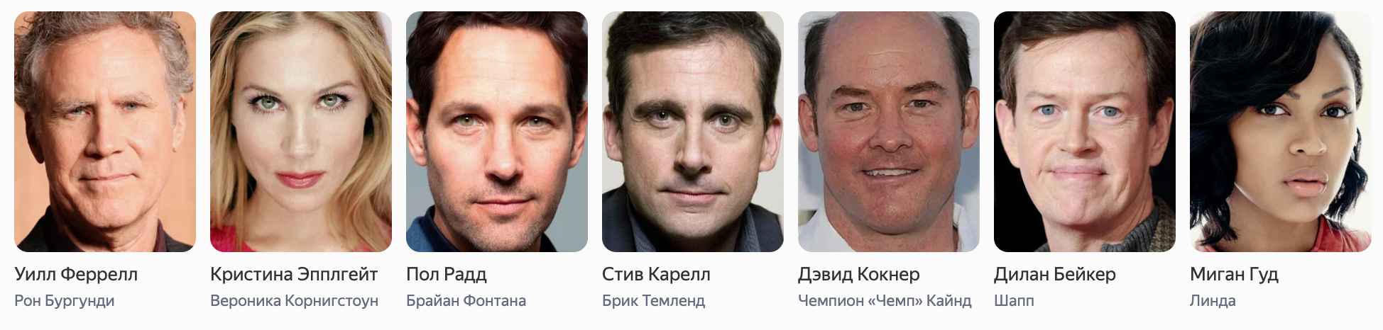 - Александр Феклистов — Сан Саныч («Год Собаки», «Отряд», «Упасть вверх», «В августе 44-го», «Любовь с привилегиями», «Катя: Военная история», «Классные мужики»);