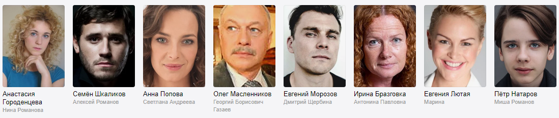 В роли главной героини Нины Парамоновой зрители увидели Анастасию Городенцеву, завоевавшую популярность после съемок в фильме «Любка». В роли мужа Нины Алексея и молодого любовника Дмитрия выступили Семен Шкаликов и Евгений Морозов. Оба актера уже не первый раз снимаются вместе. Ранее оба принимали участие в съемках фильма «Зулейха открывает глаза».