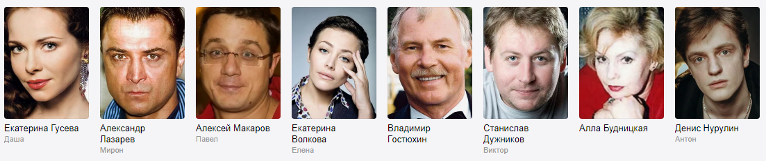 - Екатерина Гусева («Бригада», «Входя домой, оглянись», «Найти мужа для Дарьи Климовой»)
