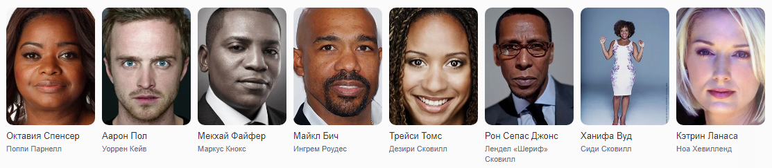 - Поппи Парнелл – Октавия Спенсер («Красные браслеты», «Мадам Си Джей Уокер», «Теория большого взрыва», «Джеймс Браун: Путь наверх»);