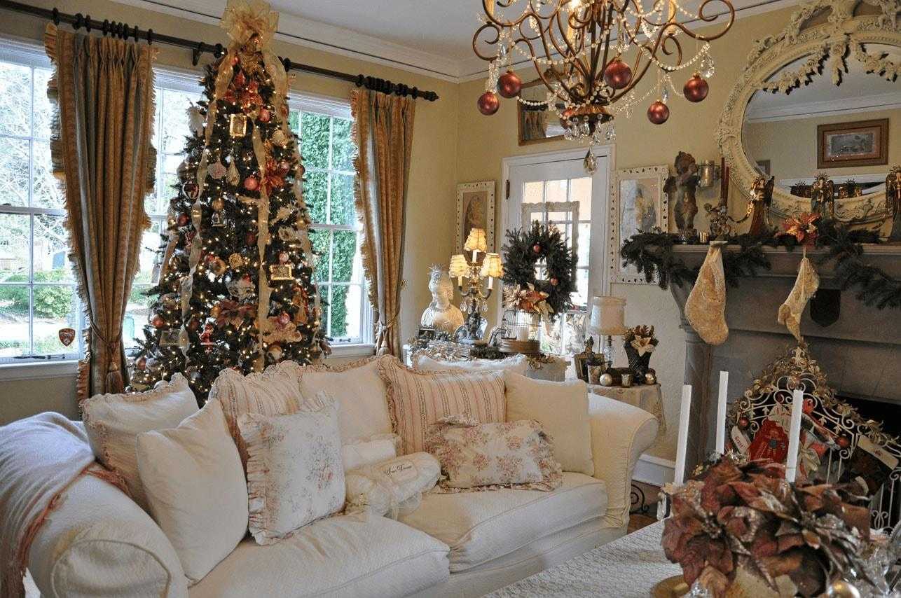 Можно выбрать некоторые и украсить их или использовать украшения везде, но акцентировать внимание на самых важных помещениях, чаще всего это гостиная, детская комната и прихожая, если на Новый год ожидается визит гостей. Где-то украшений может быть немного, чтобы просто создать праздничную атмосферу, а где-то создают настоящие ансамбли, занимающие много пространства.