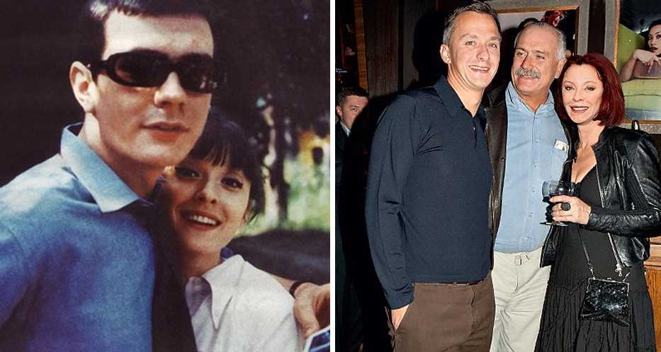Анастасия Вертинская. Слева с Никитой Михалковым в молодости. Справа с сыном Степаном и Никитой Михалковым