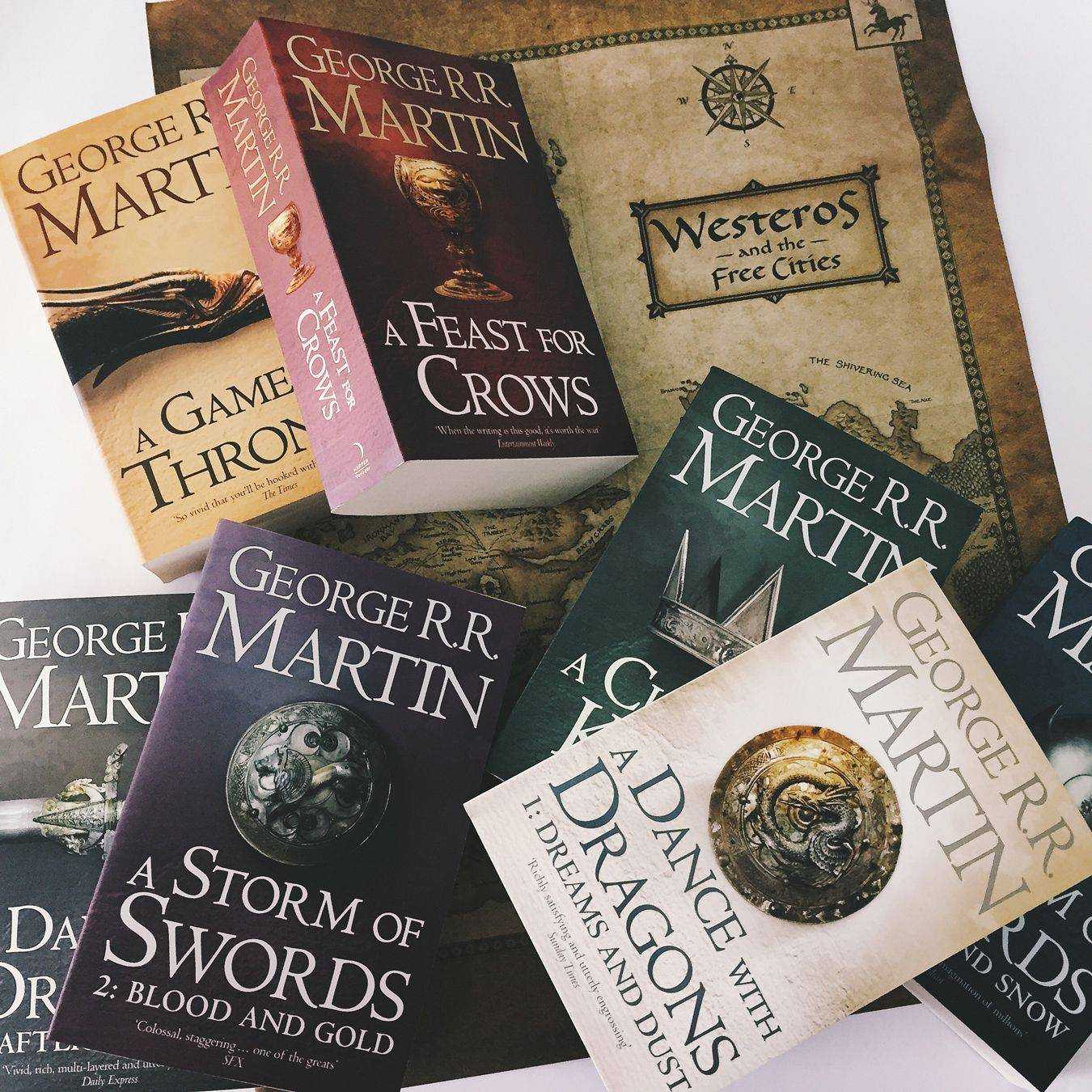 Создатель вселенной ПЛИО известен своей тягой к написанию объемных текстов. Четвертый том цикла создавался пять лет (вышел в 2005 году), и в итоге даже этого времени Мартину не хватило на то, чтобы переложить на бумагу все свои задумки. Часть запланированного вышла четвертой книгой, остальное было отправлено в пятую, которую поклонники ждали еще шесть лет (вышла в 2011 году).