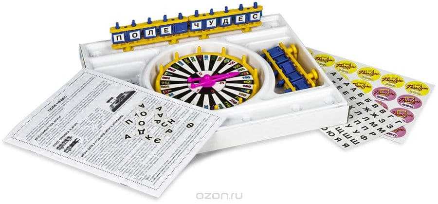 В настольной игре Поле чудес используется барабан, выполненный из прочного пластика, который не сломается от случайного падения. Он имеет небольшую диагональ — восемнадцать сантиметров, поэтому его удобно брать с с собой на отдых и в дорогу.