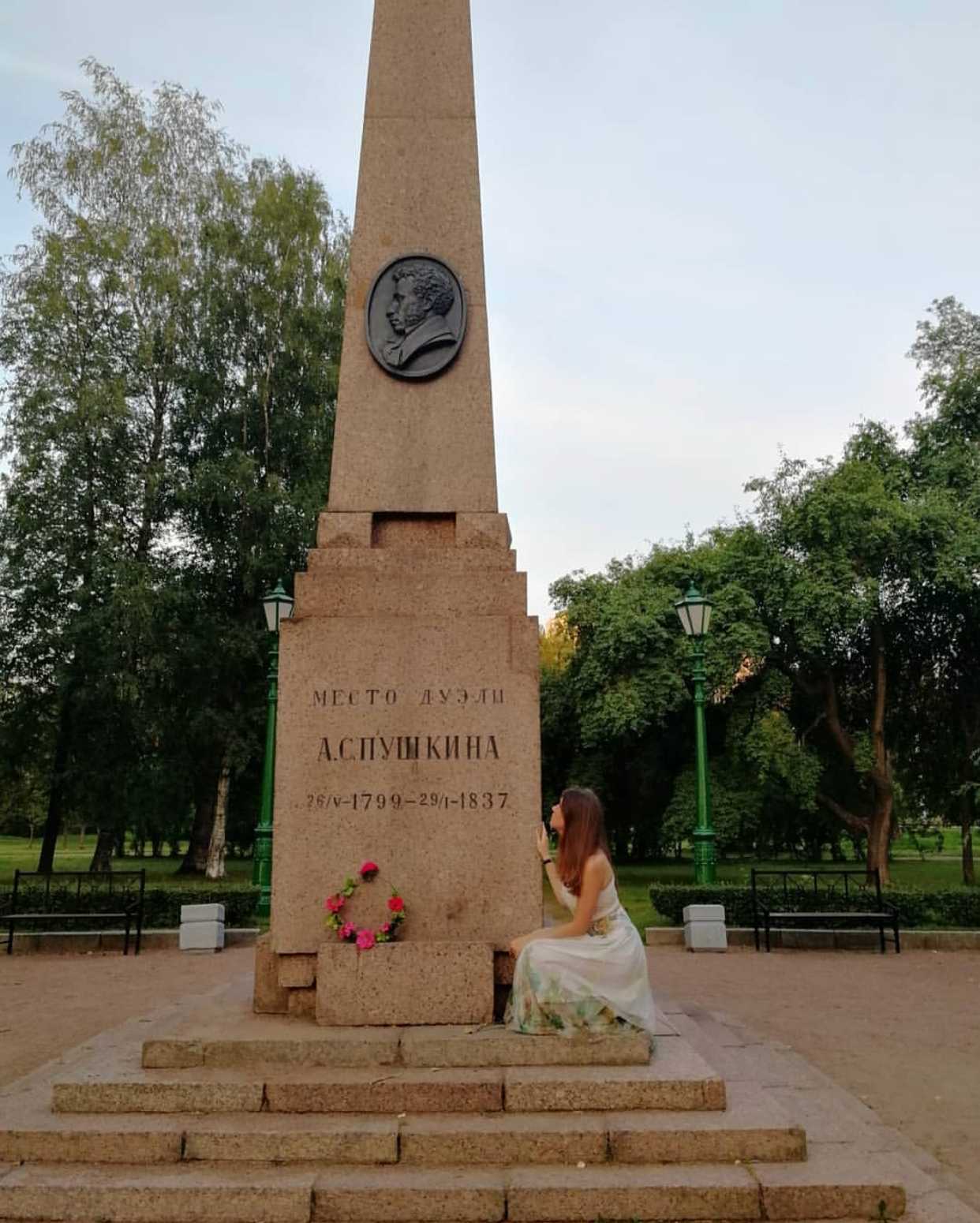 Однако есть небольшой сквер на берегу Черной реки, где была последняя дуэль Пушкина, во время которой он трагически погиб. Перед входом в этот парк есть небольшая аллея, где стоят две гранитные стеллы. На одной выгравирована памятная надпись, а на другой строчки из стихотворения Лермонтова, посвященные гибели поэта. В центре самого сквера стоит гранитный памятник. Его установили предположительно на месте той самой дуэли.